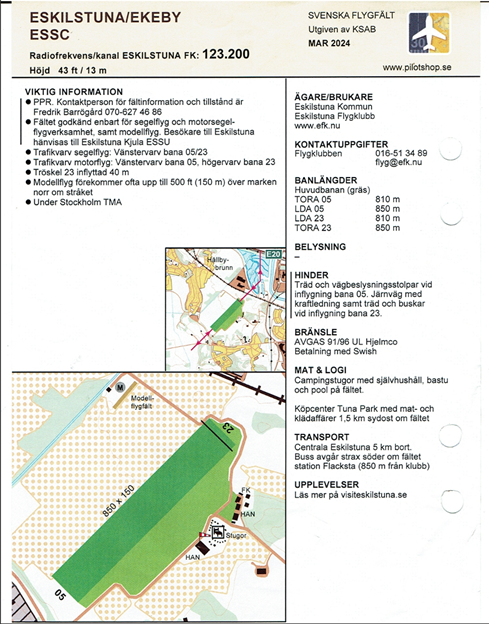 Ekeby får bara användas till Segelflygning och Modellflyg. Besökande motorflygplan hänvisas till Kjula ESSU.